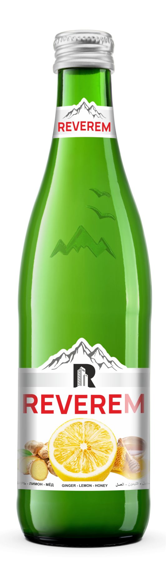Strong carbonated drink "Ginger-Lemon-Honey". (made from natural ginger and honey). Made from German halal syrups.